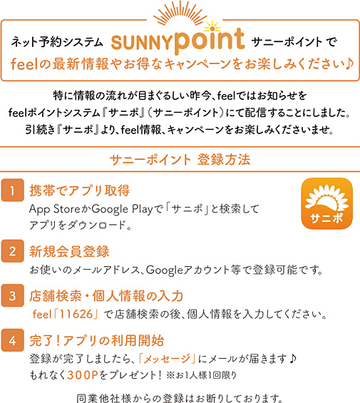 | Copyright(C) EstheticSalon feel All Rights Reserved | ||||||||||||